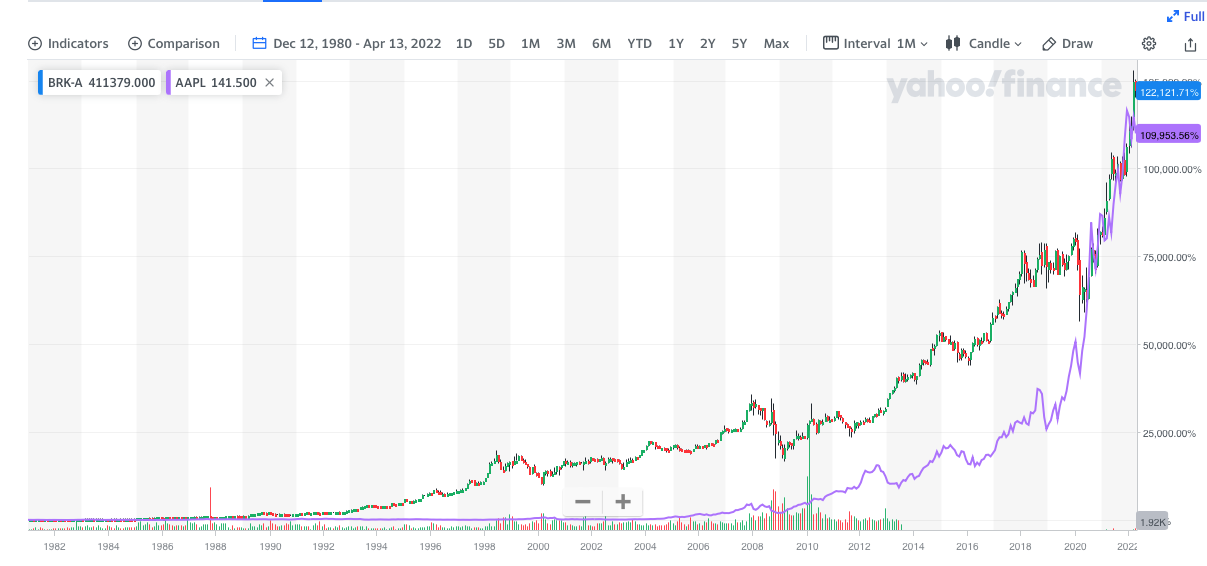 AAPL IPO on Dec 12, 1980. Regrettably, for buy n hold, you are better off buying BRK