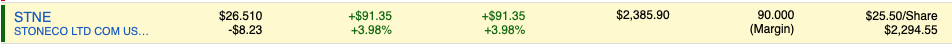 Gain from $17.50 to $44.50. Loss from $35 to $26.50. Net gain > loss in AAPL? 1.3 * 26.50/35 < 1 Bought 90 STNE @$25.50 so I can tease you that I own STNE at cheaper price than 1
