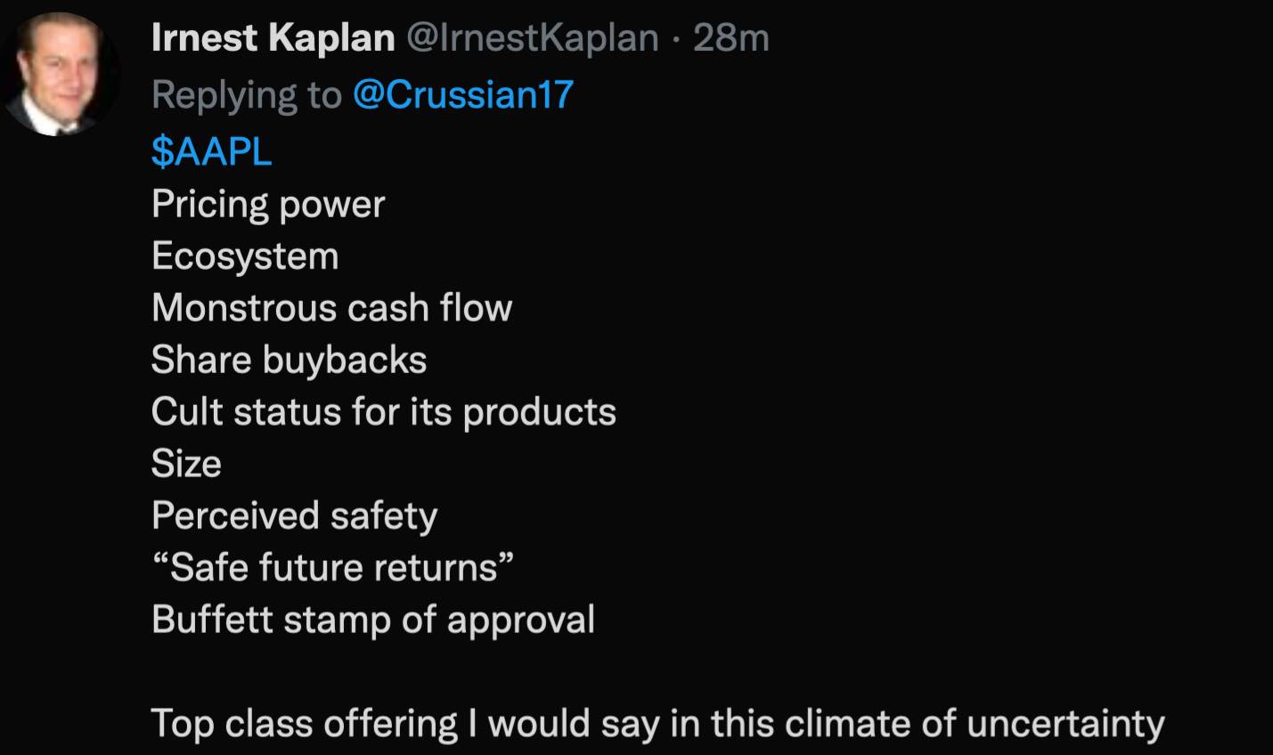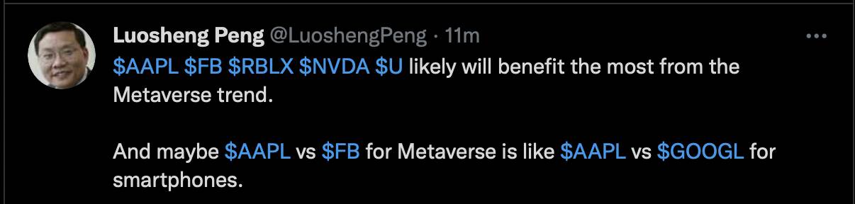 Faceripper said AAPL is the right stock to buy in 2022, he thinks there would be multiple expansion in 2022. Ofc, AAPL ![]()