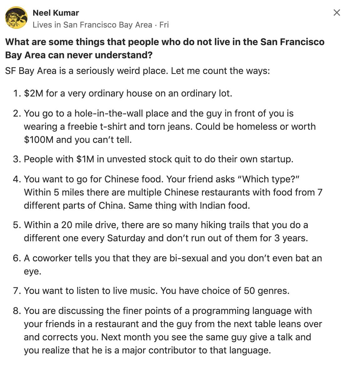 Most of the middle class people who live in SFBA and outside worry about simple things: