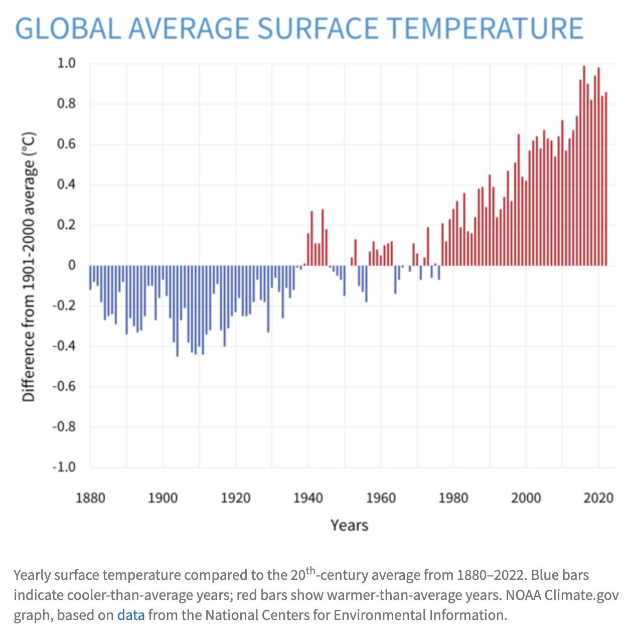 Global avg temp going up and to the right. Now some people will say these are just random fluctuations that have happened over the millennia. That’s where we need scientists to study the trend to see if there is any secular warming trend vs just cyclical, natural fluctuations and what are the causes.