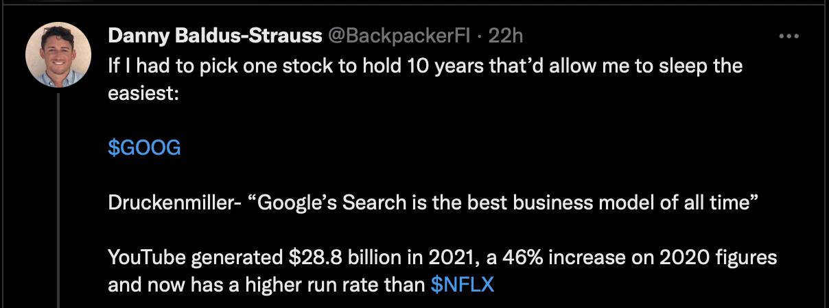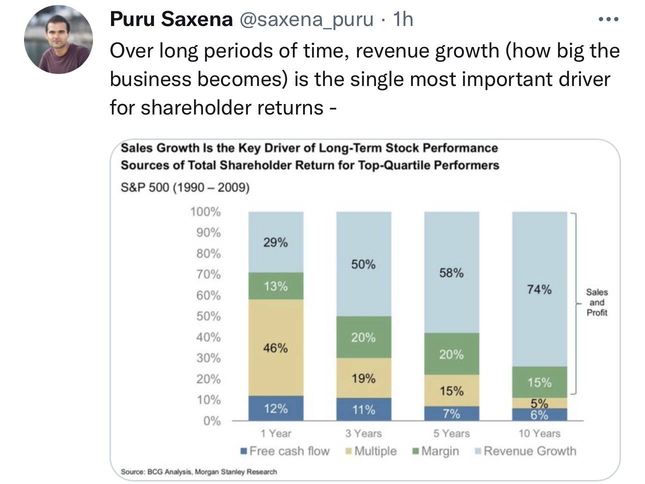 He’s not wrong. Any big 100B company today like Walmart and Costco was once a 100M company. They got to be worth 100B by their consistent revenue growth over decades.