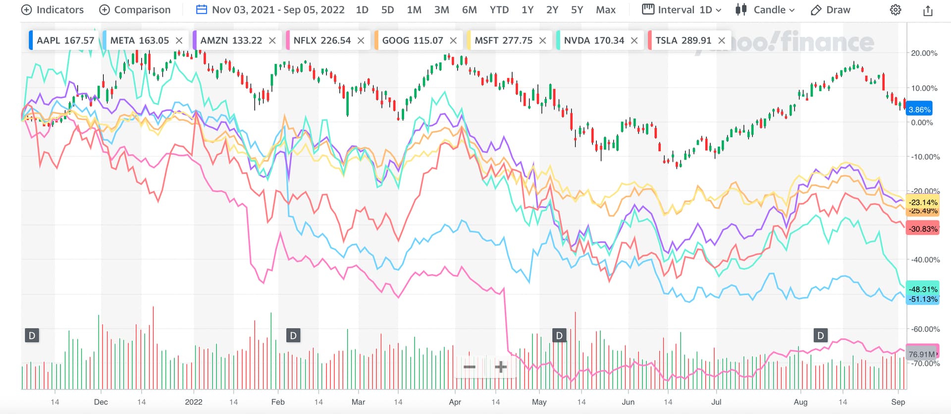 Technically, only AAPL AMZN TSLA NFLX of FANGMANT are above 50-day SMA.
