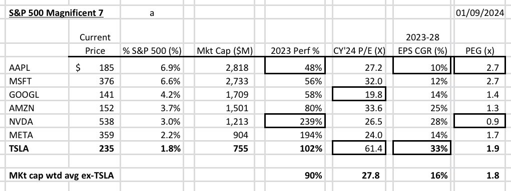 The CY24 PE is more interesting. Google, Meta and Nvidia are cheap. TSLA is out of this world ridiculous.