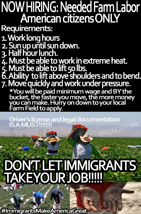 I have a strong admiration for people who are working hard backbreaking jobs to improve the lives of their family but by allowing illegal labor/immigration, we create a subset of workers who have no voting rights, labor protections, etc. I would prefer a path to citizenship and some sort of work visa for those who are contributing to the US workforce/economy.