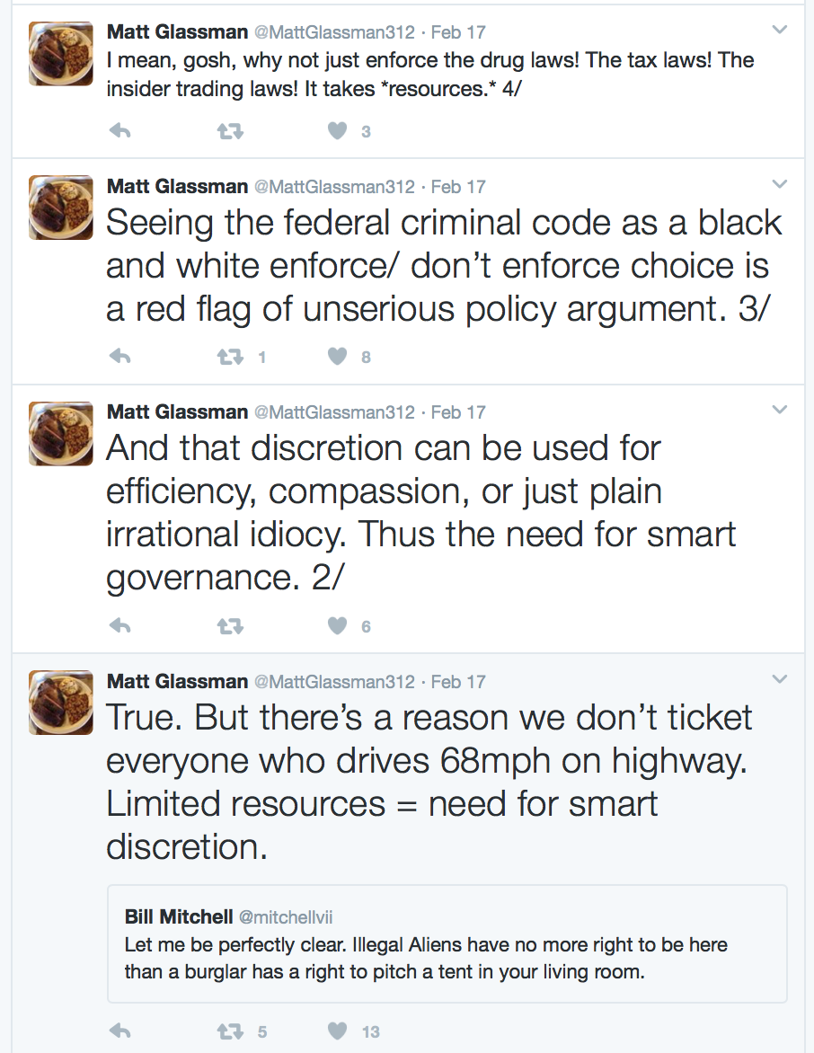 “So yeah, illegal immig are violating law. Period. But unless you want massive police state and tax increase, you’ve got to prioritize. 13/”