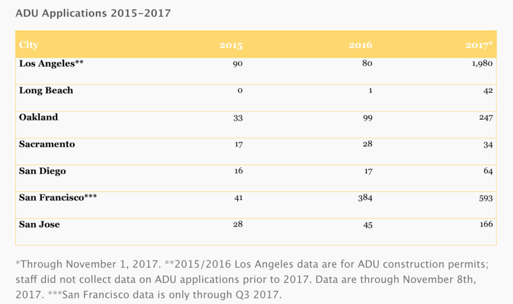 A new niche business is opening up for architects and builders as the application rate for accessory dwelling units in Los Angeles far outpaces any other major California city. L.A.'s planning office had received nearly 2,000 applications by November, according to the Terner Center for Housing and Innovation at UC Berkeley. In contrast, the city approved permits for just 80 units in 2016 and 90 units in 2015.
