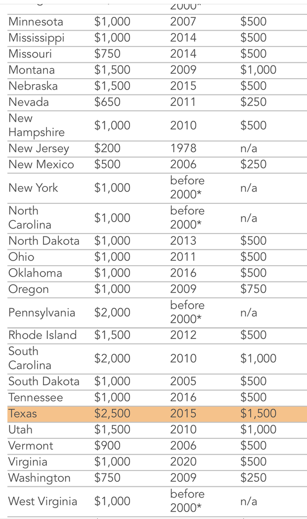 Property crimes under the value of $950 donât count as felonies in California anymore. But you know what is the number for Texas? $2,500.