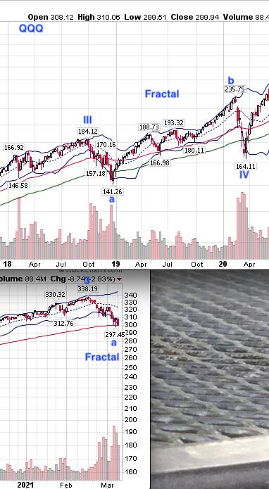 QQQ wave 4 looks like a fractal of the higher degree wave IV. So from a traditional perspective, correction is over but from an EW perspective, the corrective wave 4 is not over. Notice for wave IV, wave b is much higher than wave III ![]()