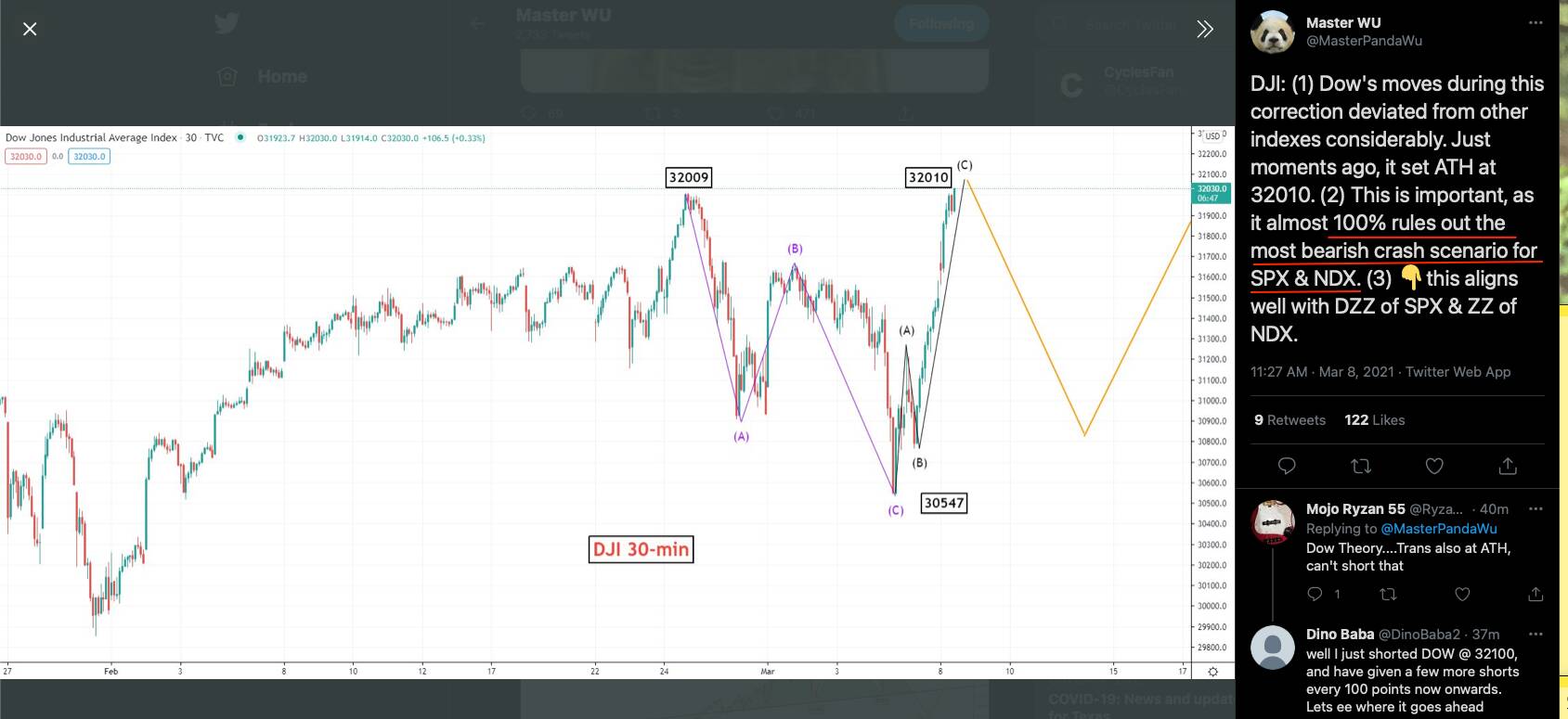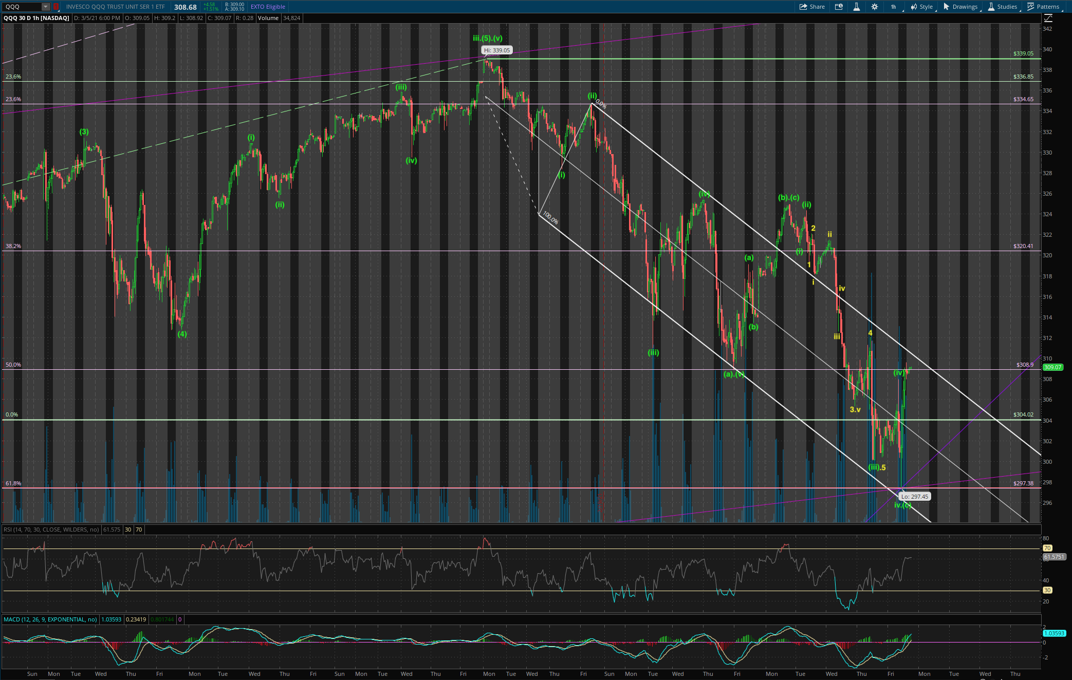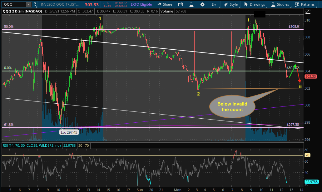 QQQ should rally to $357, with minor pull backs (pink lines are resistances), around late Mar/ early Apr.