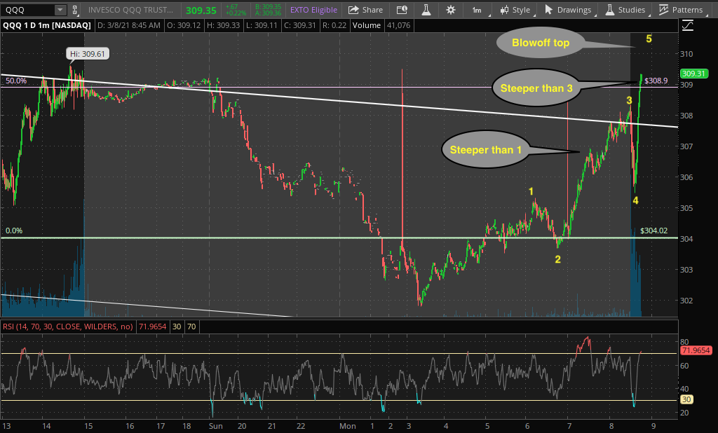 Blowoff top of wave five is easy to spot