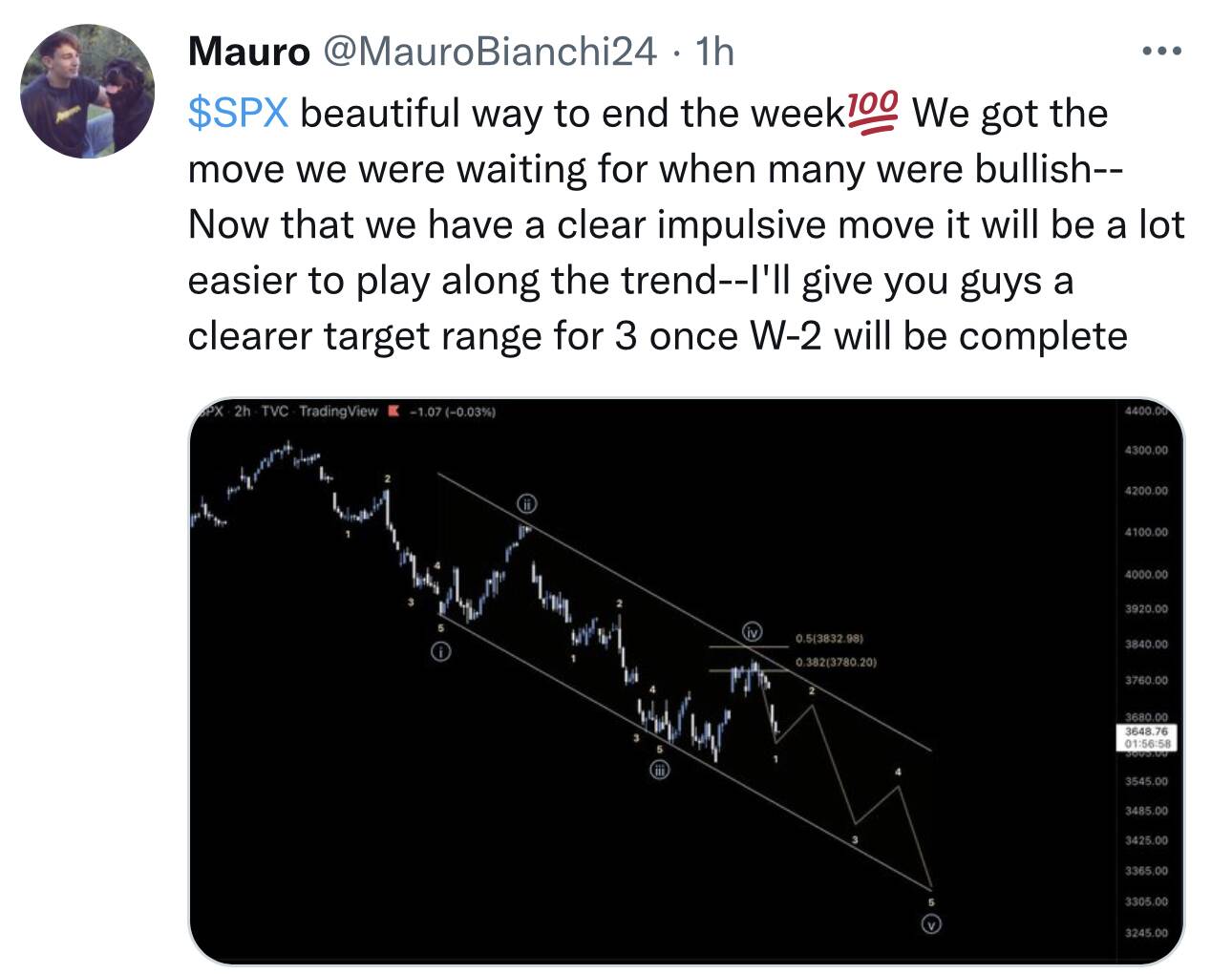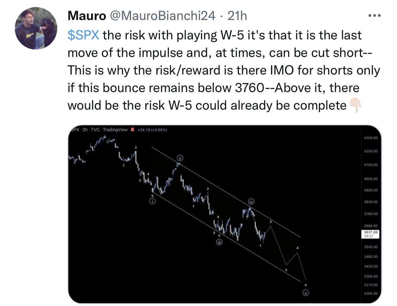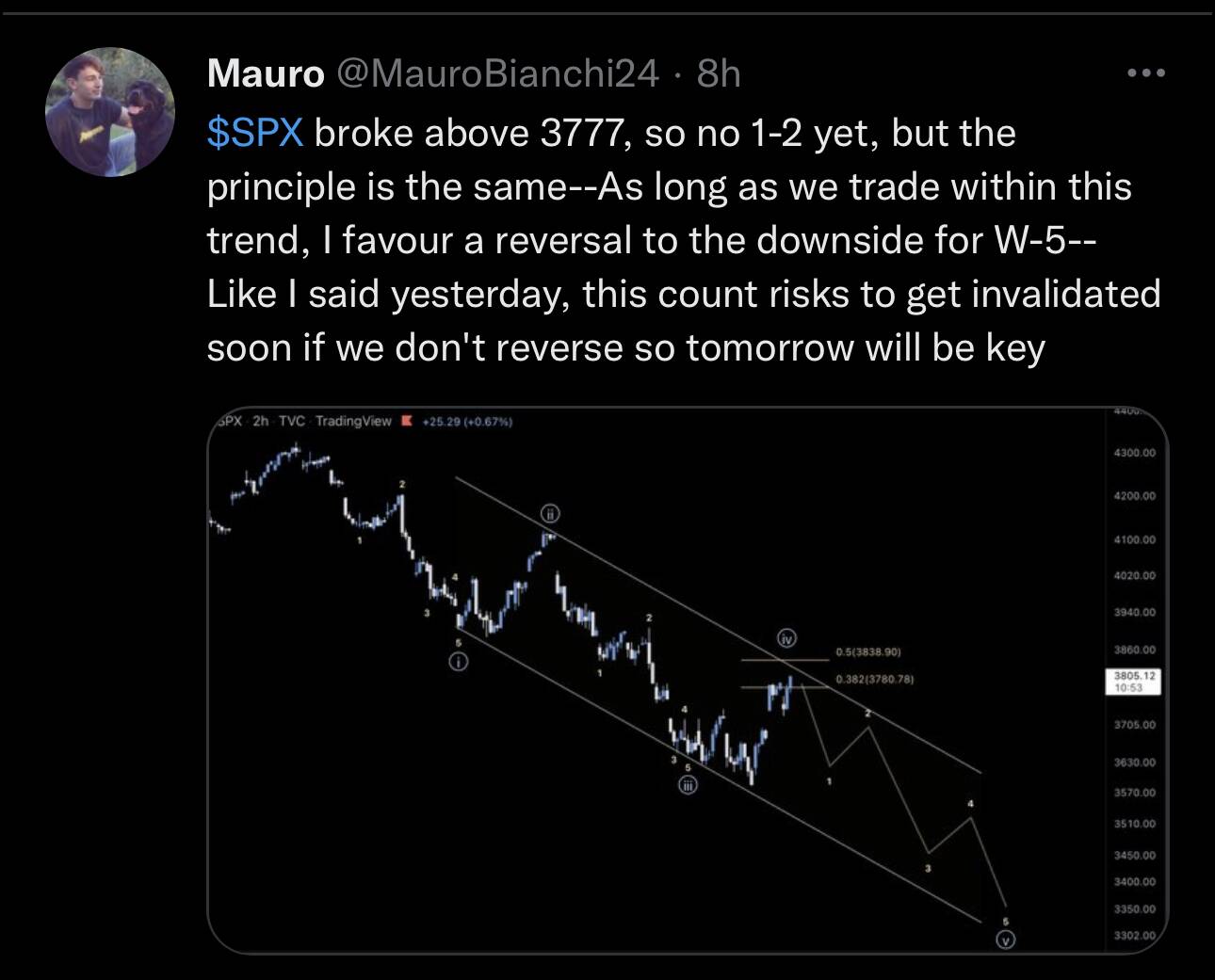 If 2mrw SPX blasts above 3843, Mauro has no choice but to declare a new bull market has begun