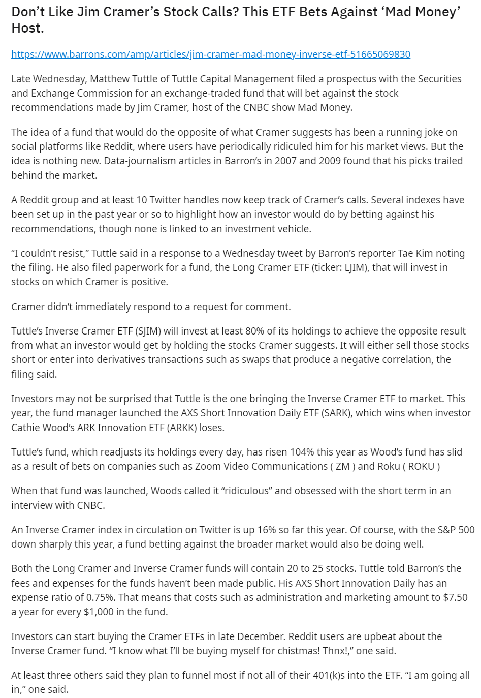 The idea of a fund that would do the opposite of what the Mad Money host suggests has been a running joke on social platforms like Reddit