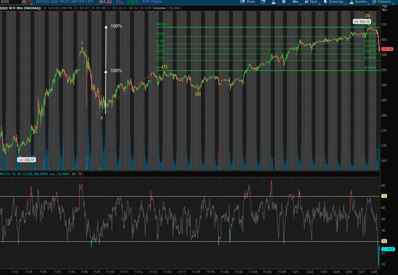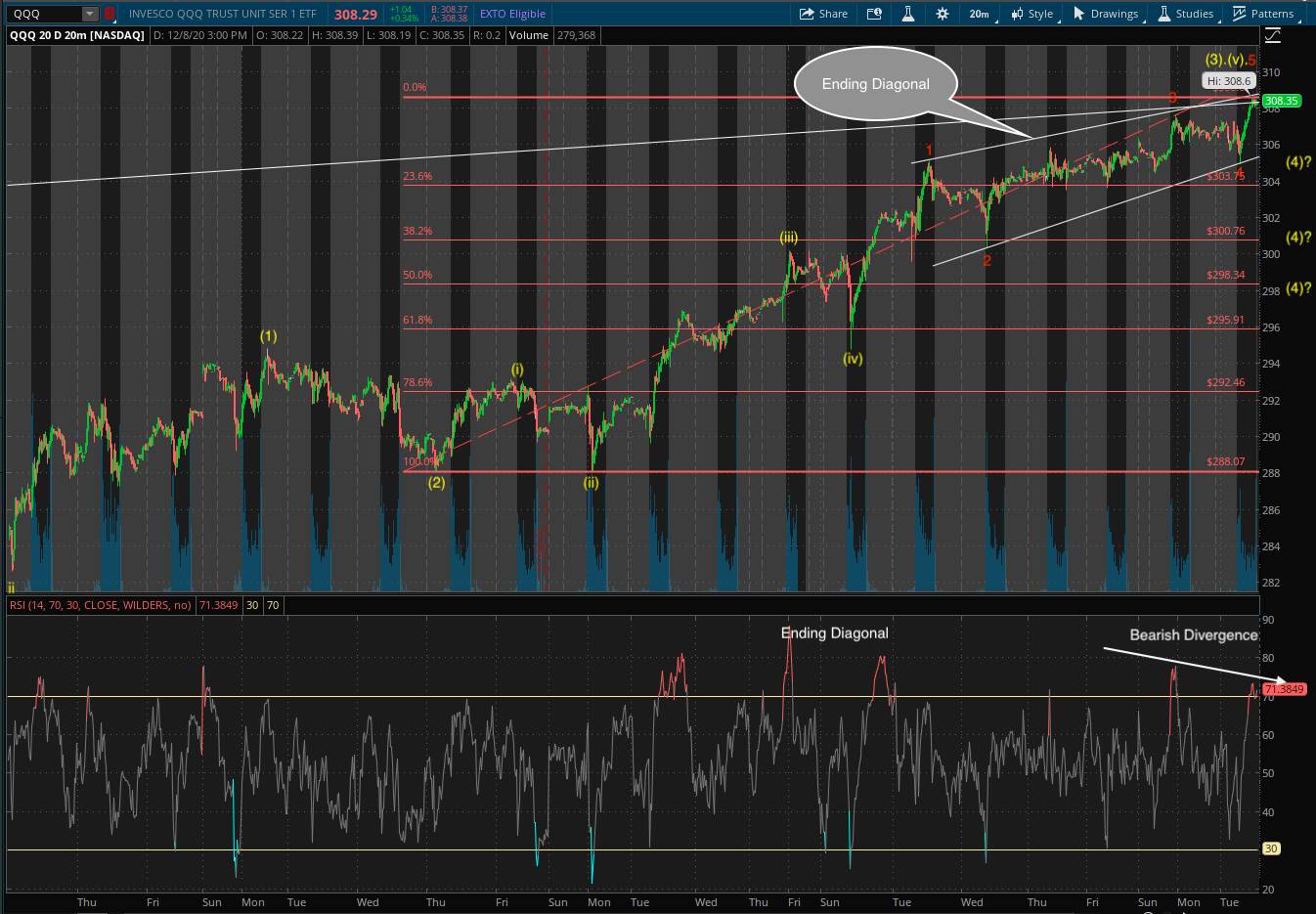 @Jil algo may be one-two days too early. QQQ indicates bearish divergence. Expect QQQ wonât go above $309 2mrw and will decline to around $300 before recovering.