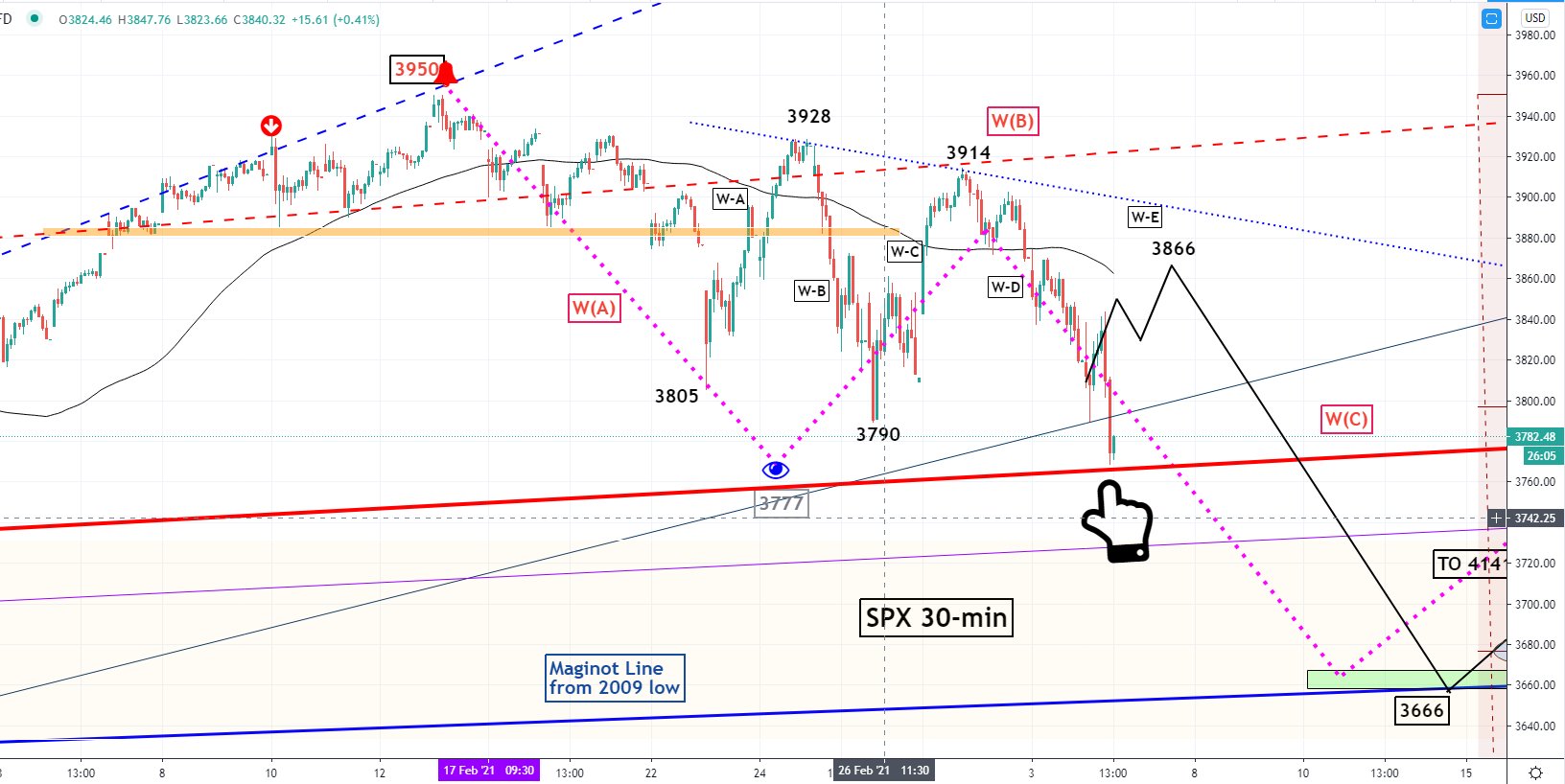 Master WU (MasterPandaWu): Hope you all heed my warning about the potential direct path via pink dotted line. (2) anyway, I have never wavered for a moment that this thing will go down hard later this week & next. (3) still think 3666 area would be hit shortly, probably March 9, if not tmrw.
