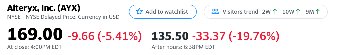 After the bombing of FSLY yesterday and today, it’s now AYX’s turn. Things are taking their turns bombing.
