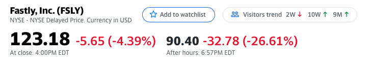 It may be further down tomorrow, It is right time to start accumulating FSLY stock, 30% dip is a sharp drop.