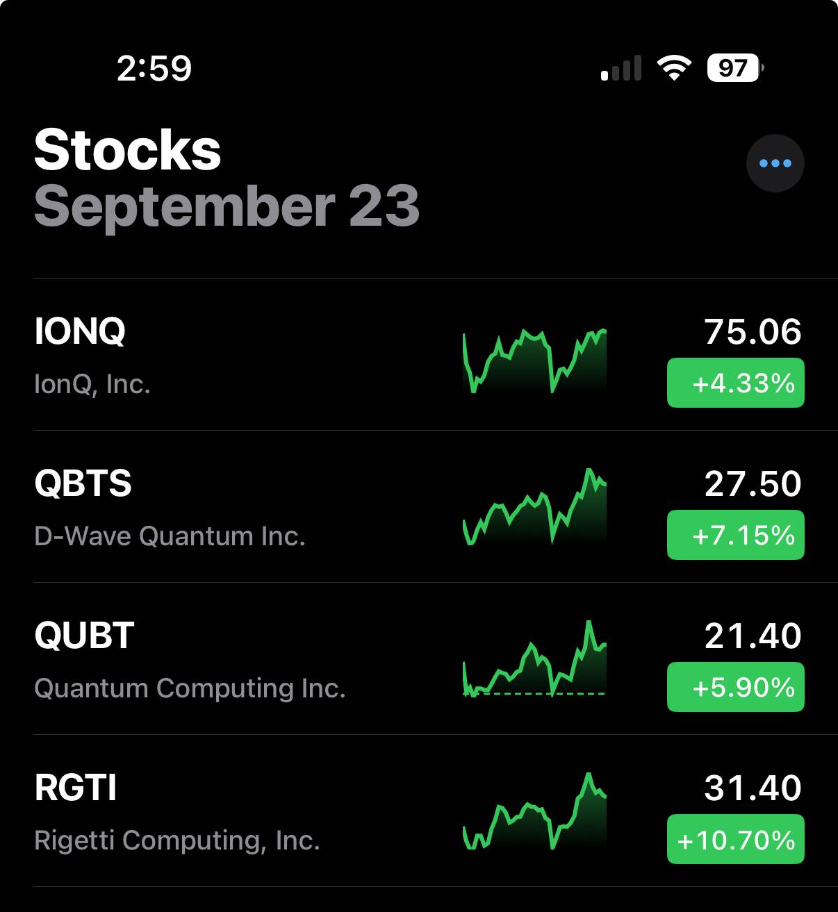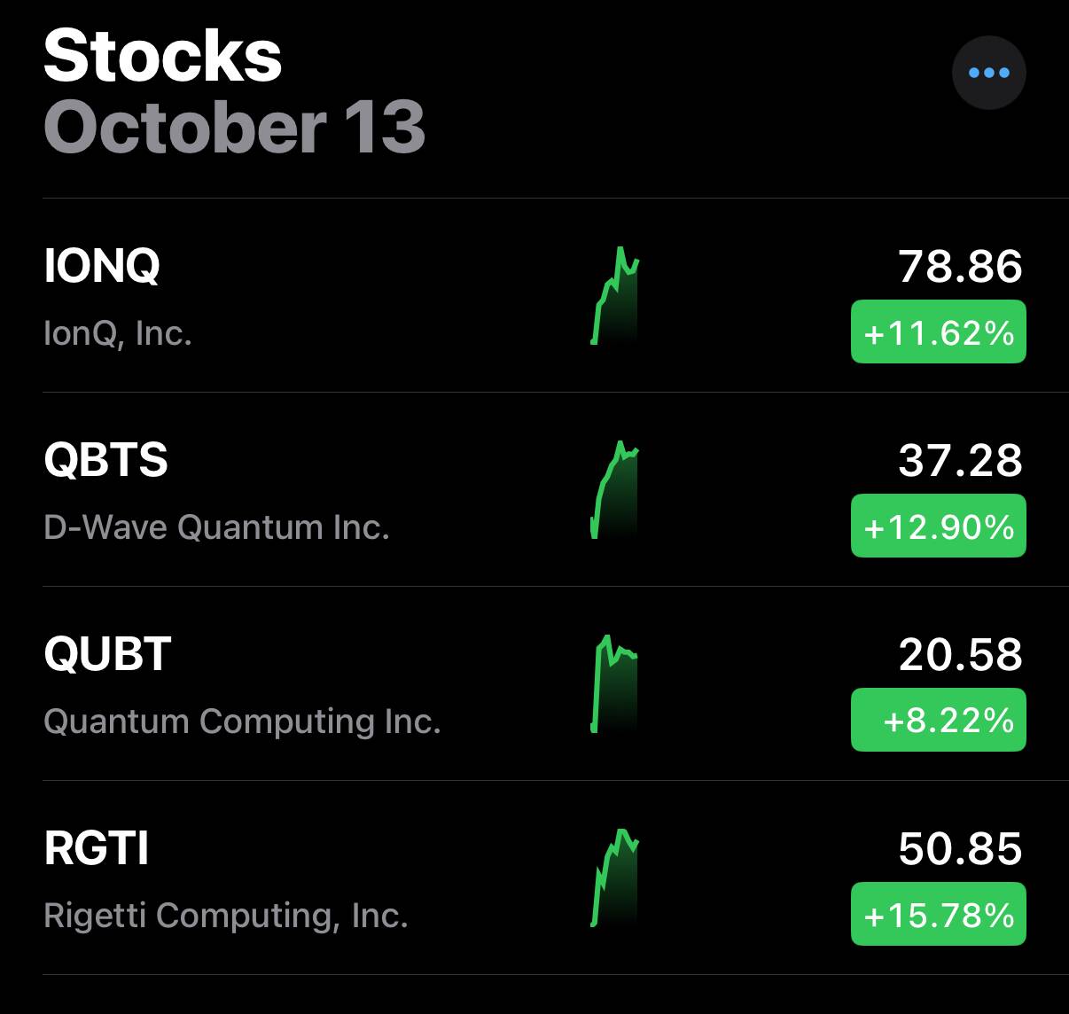 Yet another bullish day for quantum computing stocks in particular, small cap in general.