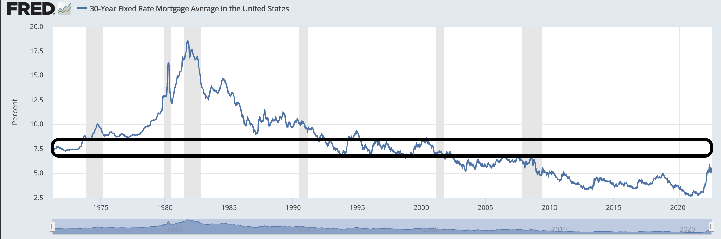 IMO, interest rates need to be in the black band below for a healthy housing market. In name of stimulating economy whether post '09-12 crisis or more recently covid, Fedâs monetary policy has kept rates artificially low for too long leading to astronomical housing price gains. Its not too difficult to anticipate what will happen as sense comes back to Fed and they bring the rates back up. And most likely they might overshoot this band first before easing rates again. (They did overshoot to the downside!)