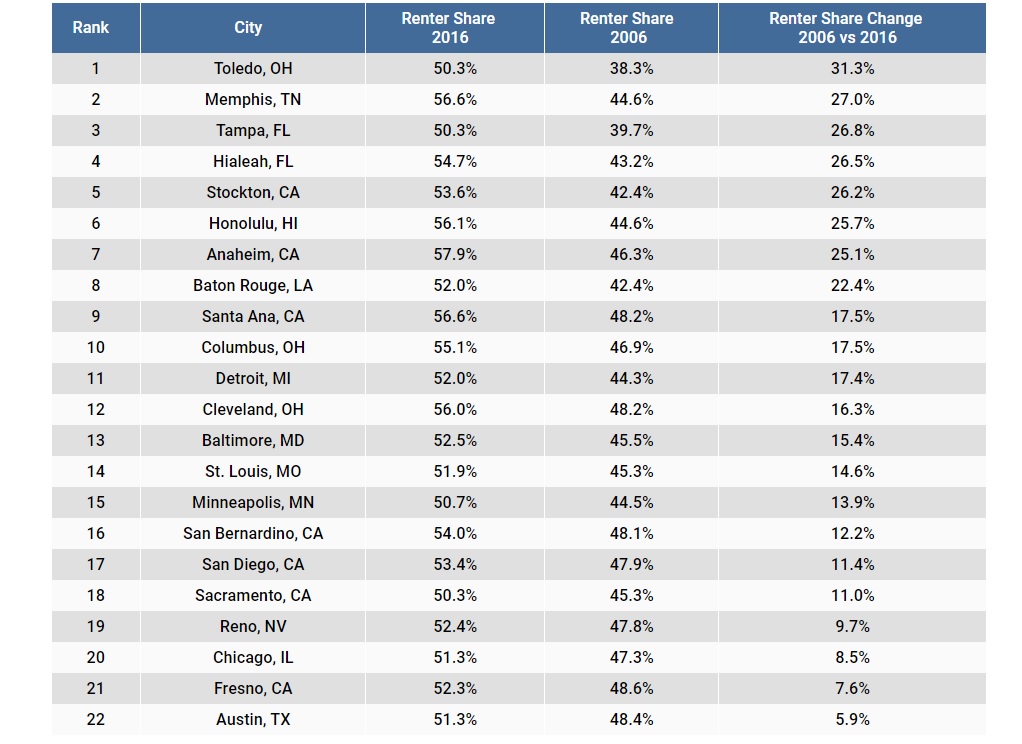 Assuming the data from the table is correct, the year over year (y/o/y) change in rental for selected cities are as follows: