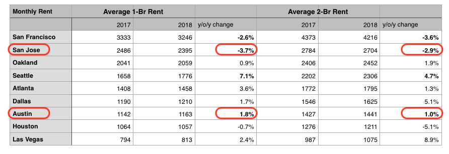 Read the full report. San Jose dropped 0.08 percent (pretty much no change) where as Austin dropped 0.44 percent.