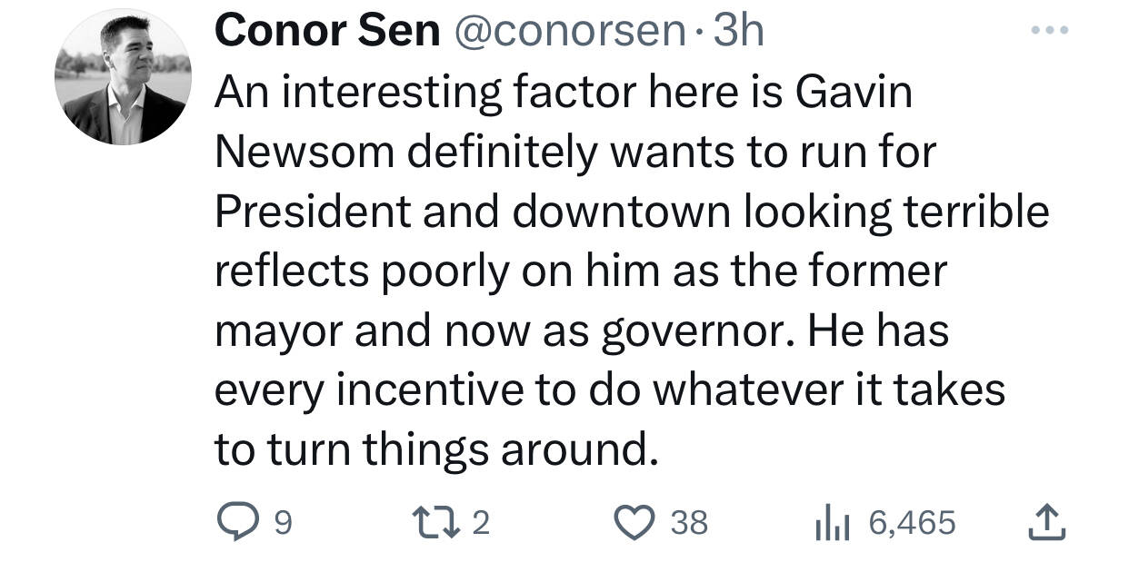 The crime problem is actually the easy bit. All we need is voters demanding solutions and throw out the far left Supervisors next year. It can literally change overnight. The harder problem is how to re-configure downtown. But if tech bounced back with the help of AI we may not even need to change downtown all that much. All those office towers may get filled again.