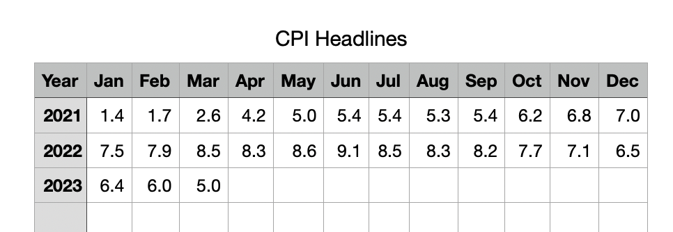 This Wed CPI 5.2% expected. A drop of 0.8% from previous month.