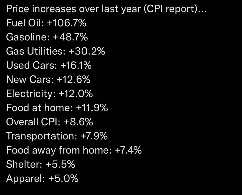 I was actually surprised at today’s data. My admittedly anecdotal impression was that prices, while not easing, had started to stabilize. I expect acceleration in inflation in the Fall as recent crude price rises have yet to be priced in and the things like exploding grain and fertilizer costs have yet to fully hit food prices. It will certainly be an interesting year.