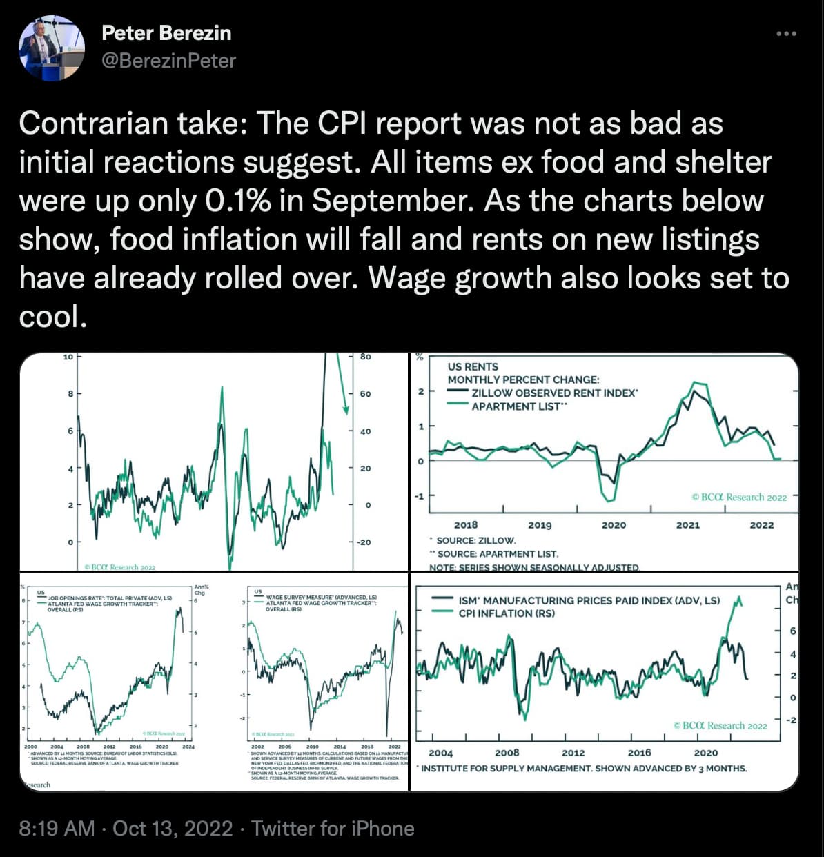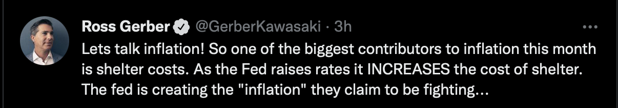 The inflation data is not as bad as reported by most media. Key thing is to look at MoM data, not YoY. There is also an increasing number of people realizing, and pointing out, that the rent part of the CPI data is extremely laggy. It basically tells us the rent and house price inflation we saw last summer. It’s not reflective of the current situation to say the least.