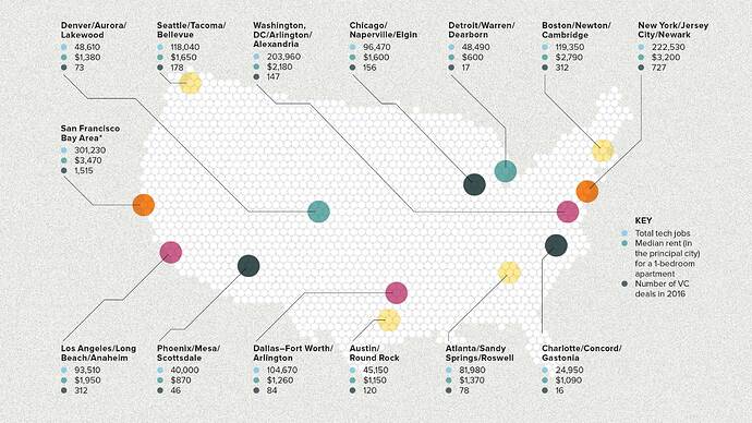 I am surprised to see LA doing so well. It’s just a bit behind NYC but way ahead of Seattle and Boston. I still maintain Austin is no tech hub. If it’s a tech hub so is everybody else like DC.