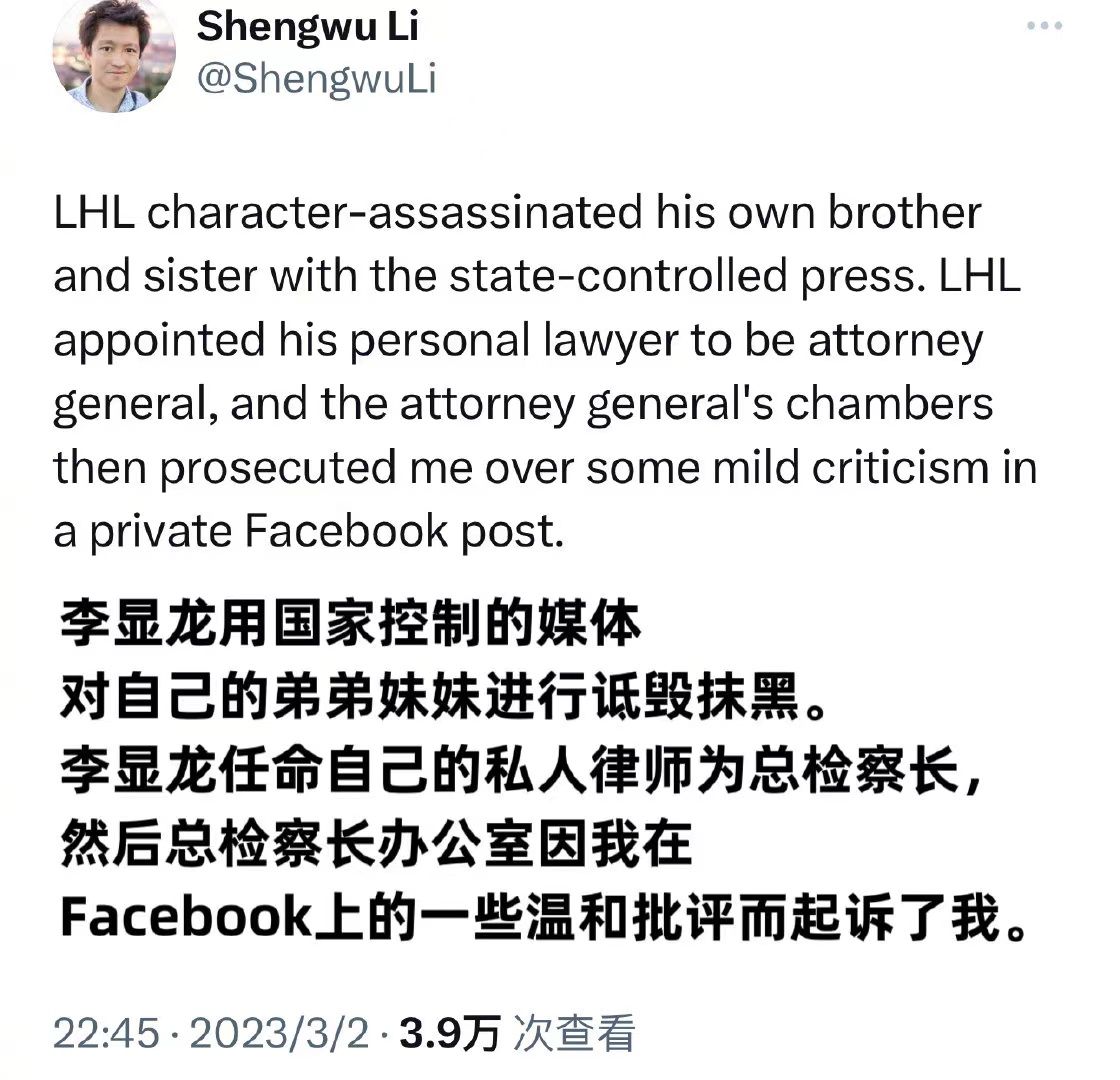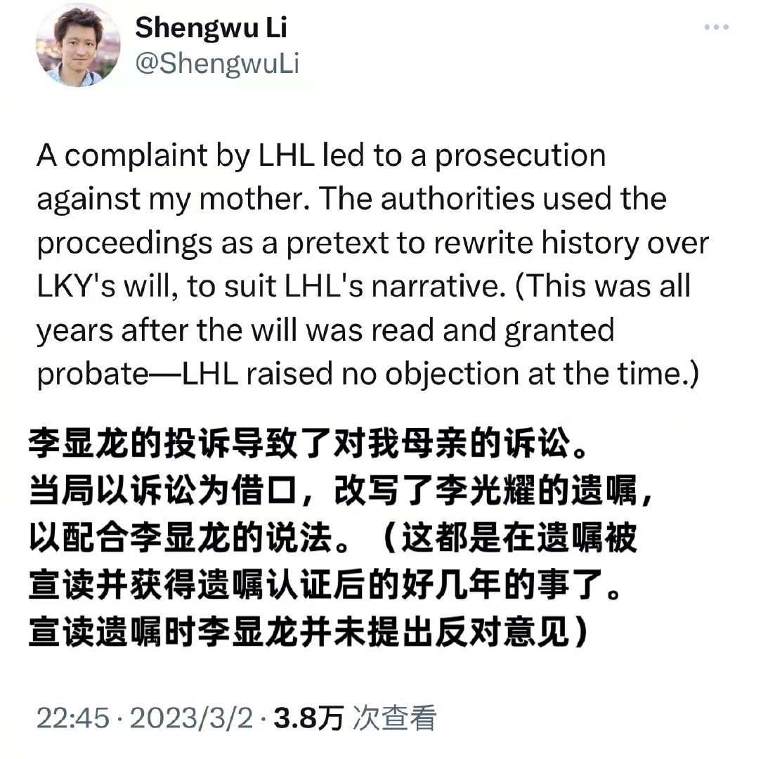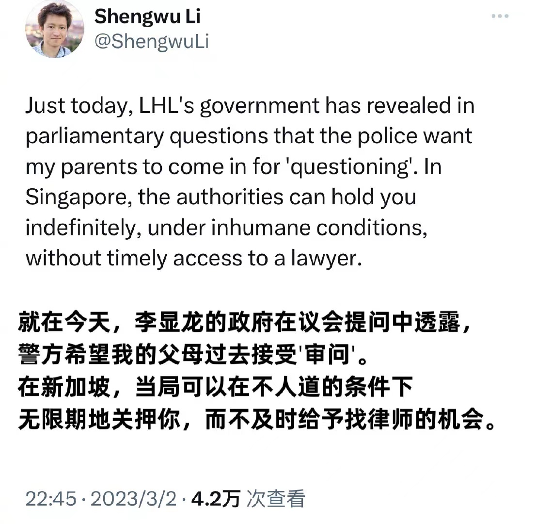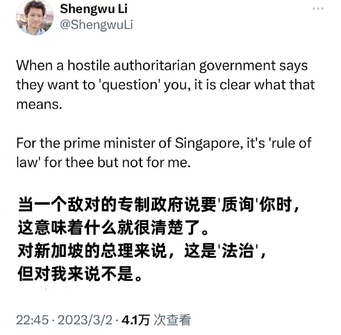 Here’s a grandson of SG founding father Lee Kuan Yew. He’s now a professor at Harvard. The wise ones always moved to free countries like the USA.