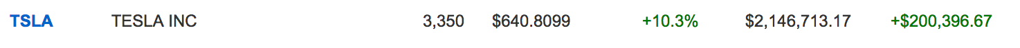 My TSLA position as of today. Wow! An amazing $1 million+ gains in 3 months. What an incredible investment opportunity of a lifetime.