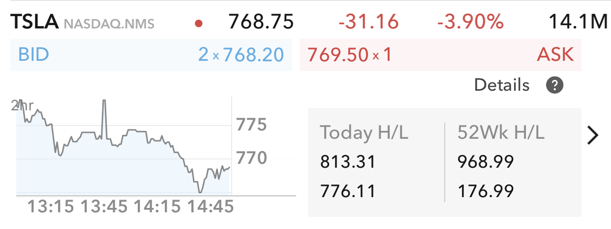 True, TSLA was testing my faith, bought more at $700 and $678, but did not sell.