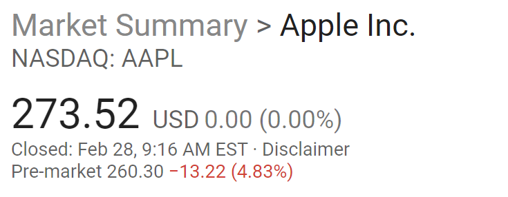 Similarly AAPL has gone into correction territory and might into bear market if market continues to have respiratory issues. Remember there are 28,500 American military in South Korea, potential Covid-19 carriers.