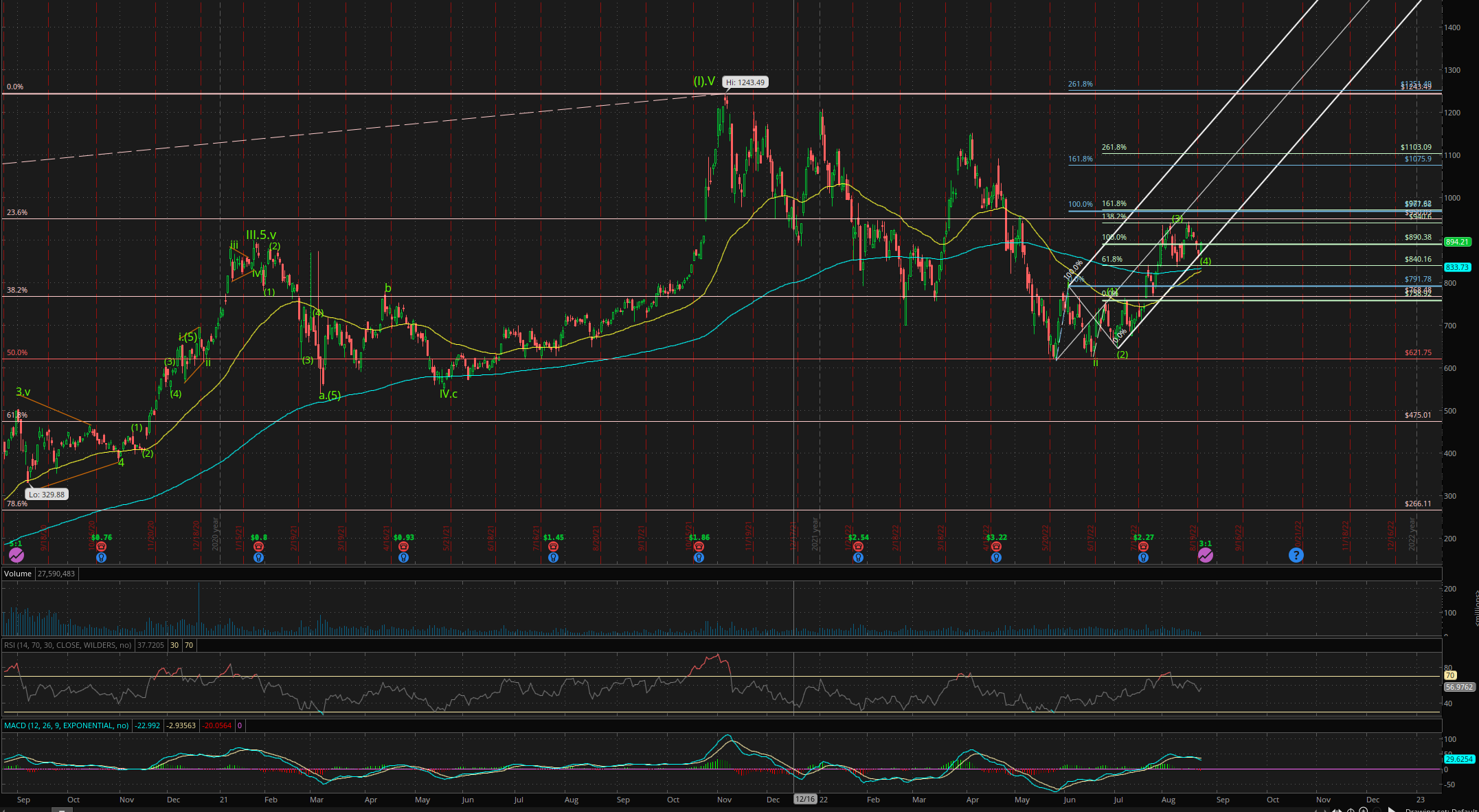 Tesla to split tomorrow. For those who missed the bottom in June, it’s still not too late to buy at $900.