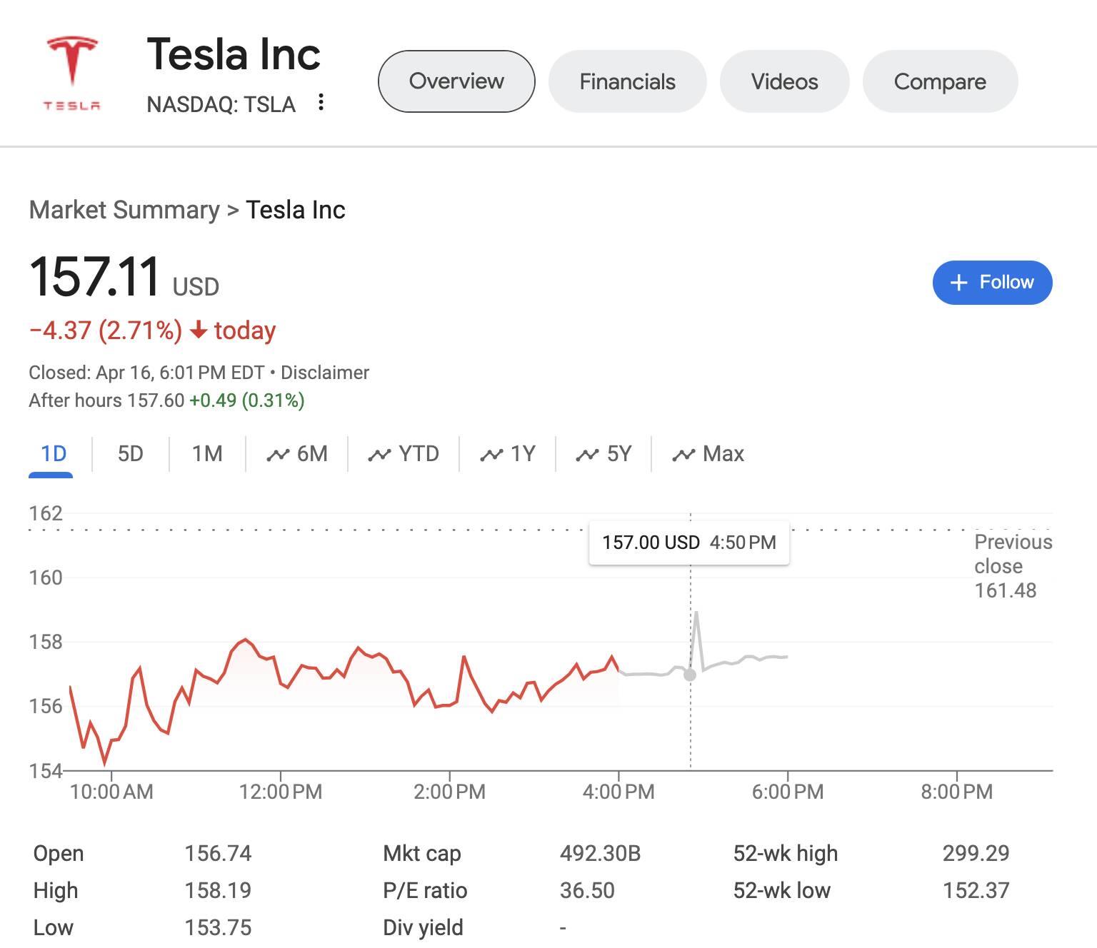 From $352 to $157, 56% drop since Tesla moved out of California to Austin, Texas.