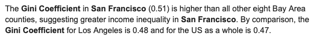 These factors combine to make salary of SWE and tech workers in general go up like a rocket. Bay Area has the highest concentration of tech in the world so its inequality is inherently high. It’s not that salary for other work is low. It’s just that pay for the tech sector is insanely high.