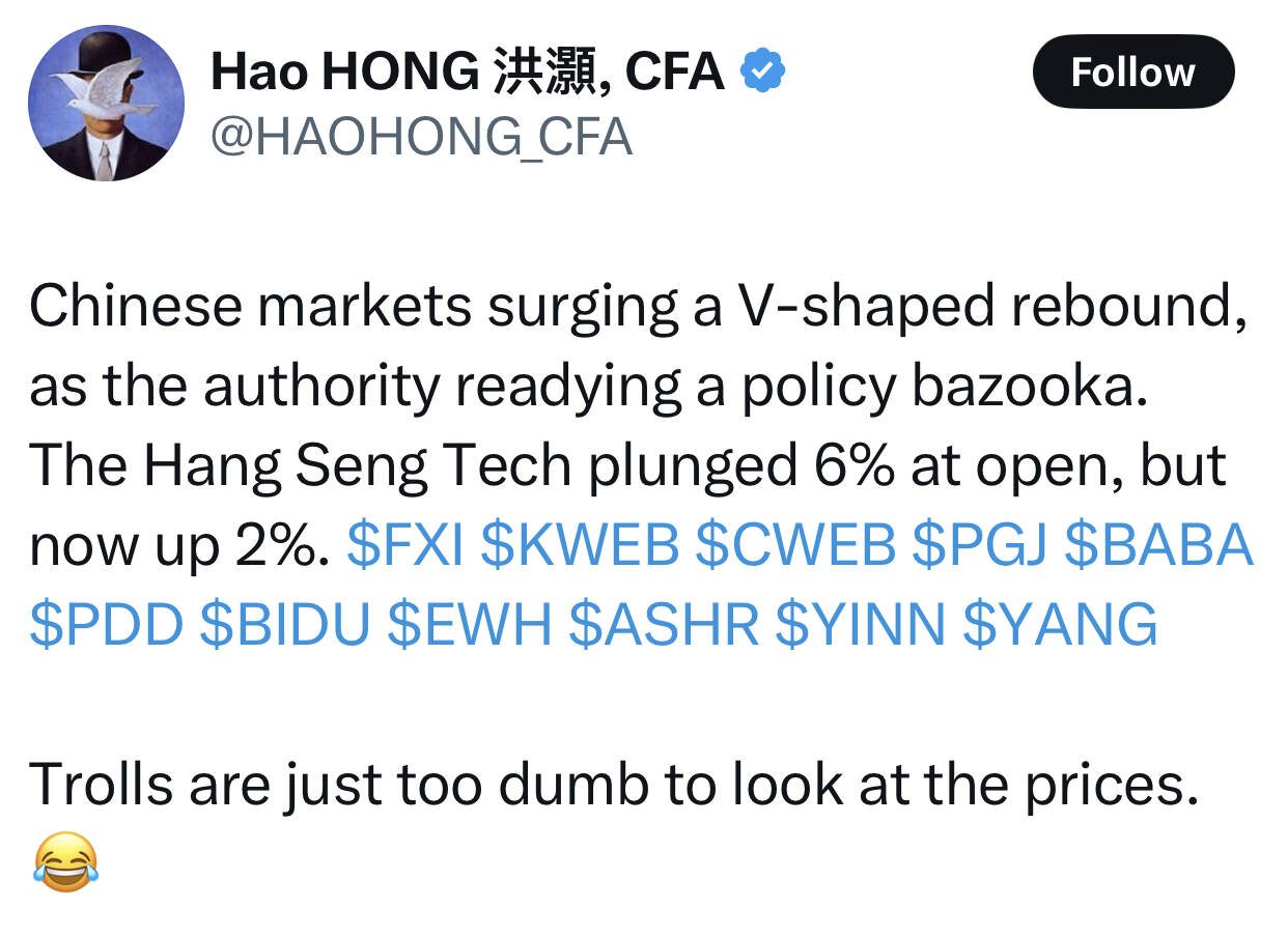 I suspect China won’t retaliate the 50% tariff, just stay with the 34%.