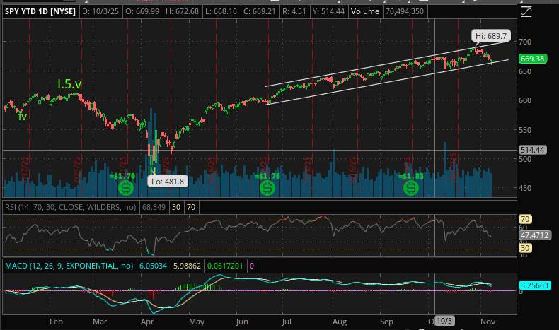 SPY re-bounces from support (lower channel).