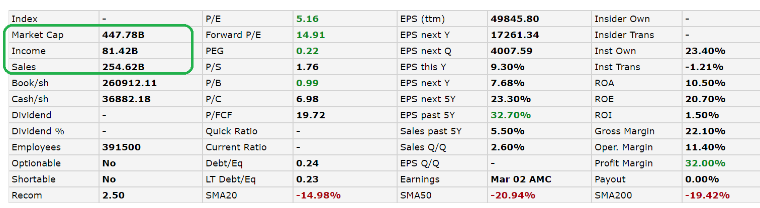 If you closely watch the figures with this you understand the difference. This is warren buffet Berkshire company, a cash flow generator who has 128B cash to buy companies (out of 447B Market Cap) during recession like this.