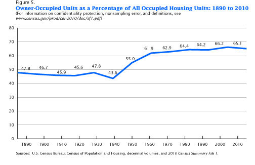 How is it a success when the home ownership rate is unchanged except for the NINJA loan period? The same percent own a home and now homes are far more expensive. All we did is trap people in more debt to become home buyers. Is that progress?