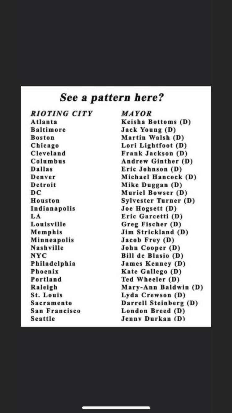 There are no riots in 90% of that list right now. Hasn’t seen any riots for a while. Calling them “riot cities” is politicized fear mongering.